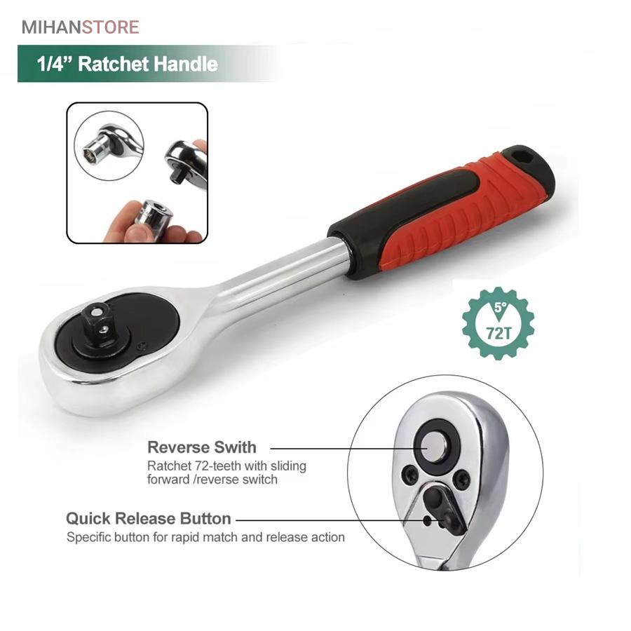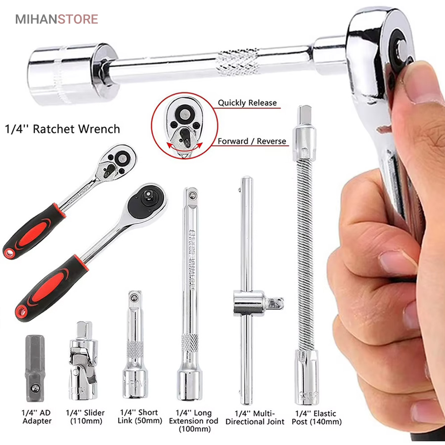 - 1 عدد آچار جغجغهای به طول 19 سانتیمتر با درایو 1/4 اینچ