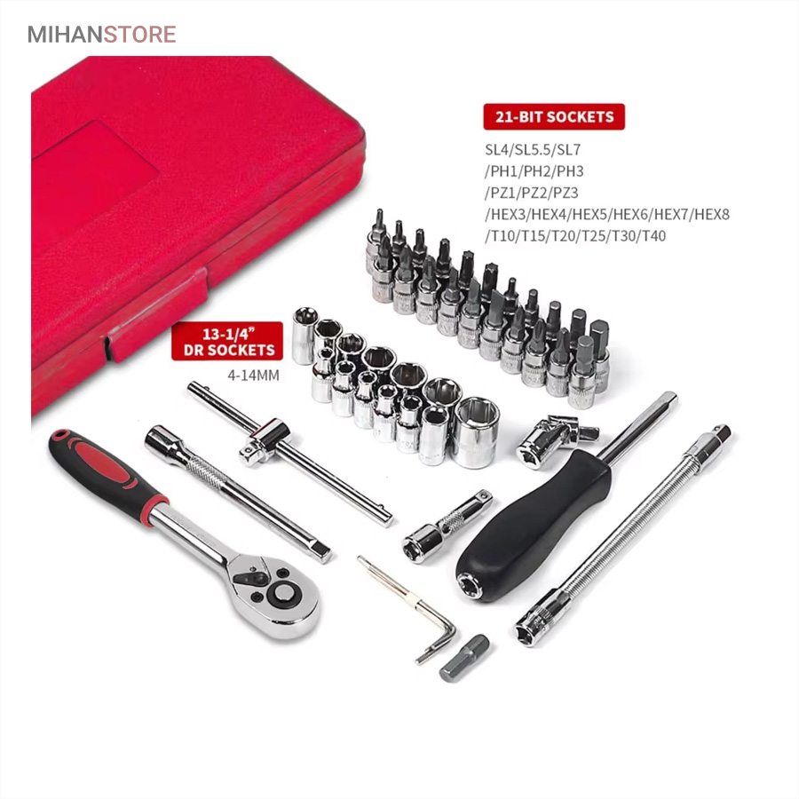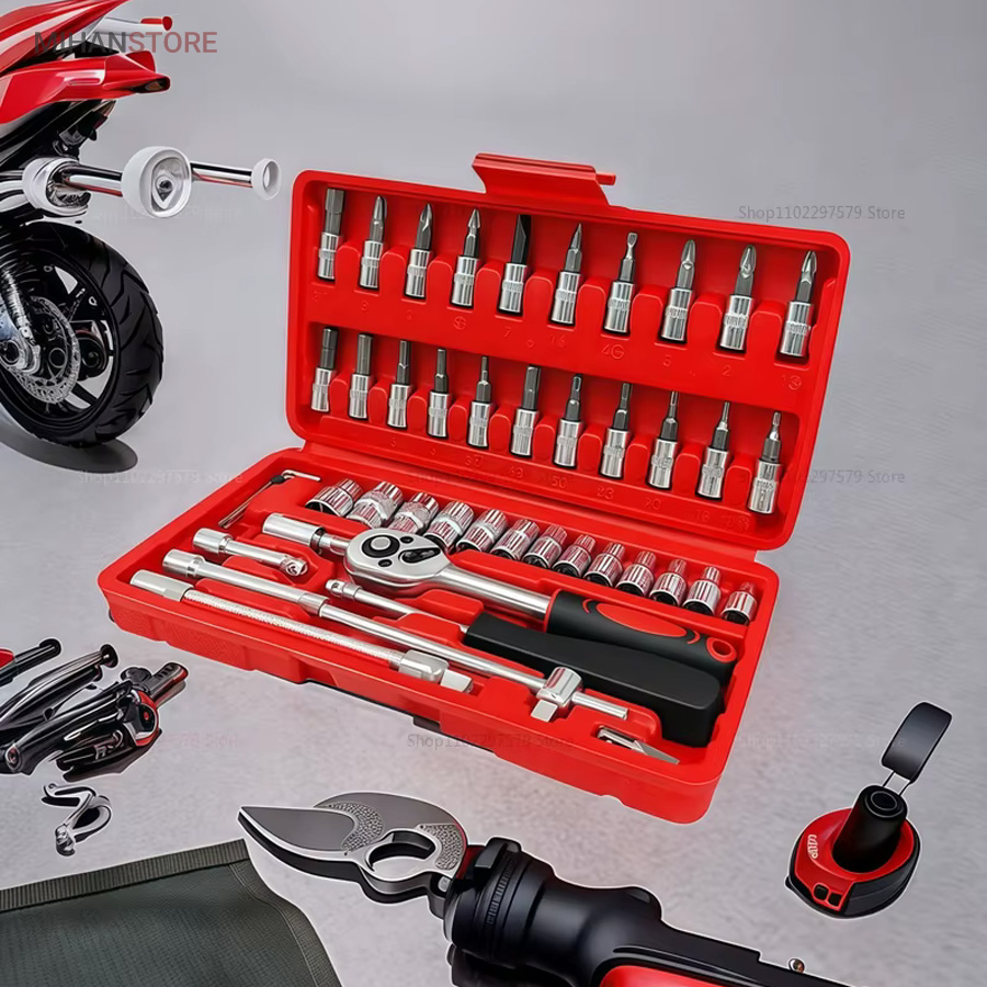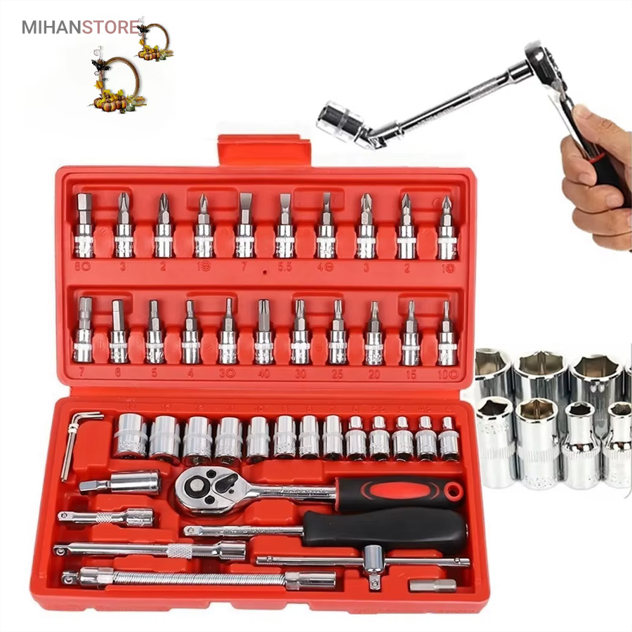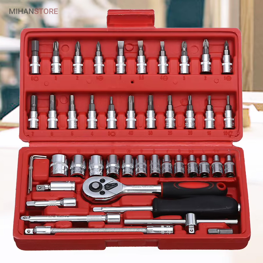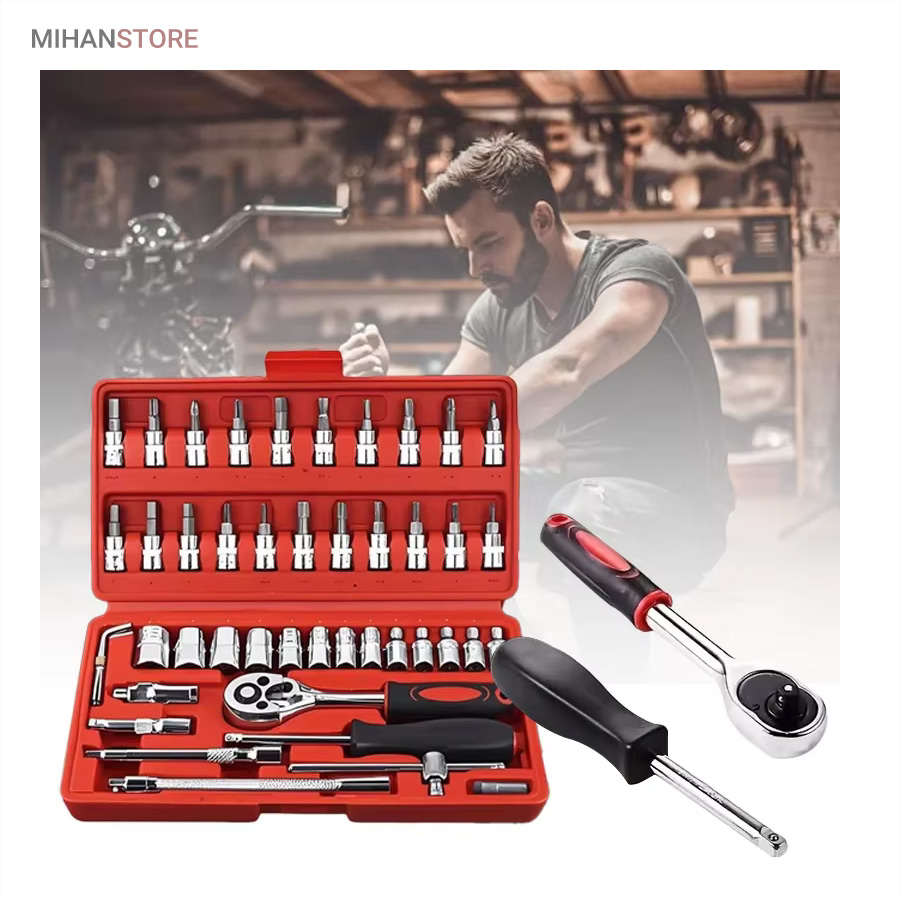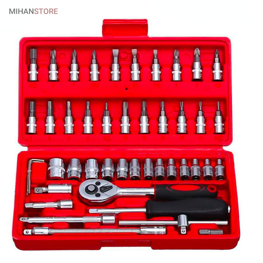 جعبه 46 پارچه آچار و سری بکس و پیچ گوشتی