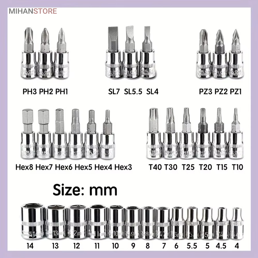 این سریها درایوی 1/4 اینچی دارند که با دستهی آچارها و سایر متعلقات مجموعه سازگار هستند. سریهای این مجموعه سایزهایی 4، 4.5، 5، 5.5، 6، 7، 8، 9، 10، 11، 12، 13 و 14 میلیمتری دارند.