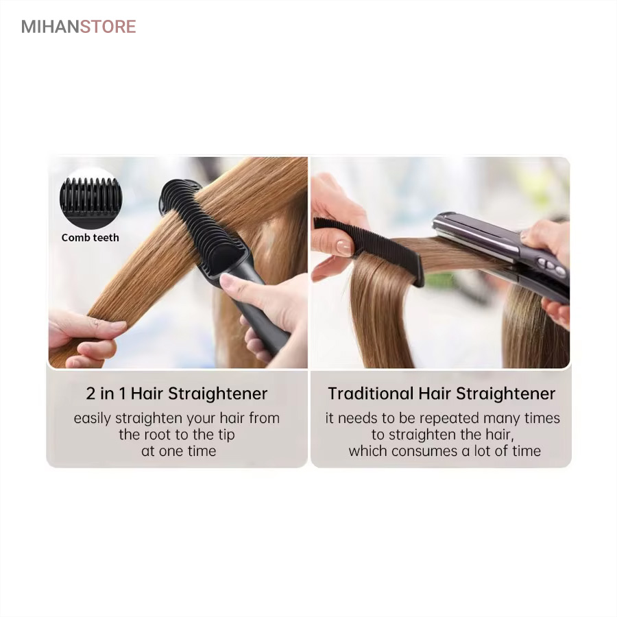 هنگامی که شما تصمیم به استفاده از برس حرارتی گرفته اید بهتر است بدانید که چندین مزایای مختلف را شامل شده اید. مانند: استفاده ی راحت و آسان، وقت گیری کمتر و صافی مو در کوتاه ترین زمان ممکن، صاف شدن مو بی آنکه مو وز کند، کاربرد های متفاوت، حمل آسان و از همه ی این موارد مهم تر، آسیب رسانی کمتر به مو!یکی از بهترین کارکرد های برس حرارتی صاف کننده مو STRAIGHT COMB حداقل آسیبی است که به مو می رساند چرا که مانند برس تنها روی موها کشیده می شود و حرارت درست و صحیحی به موها می دهد که باعث سوختن و آسیب رساندن به مو نخواهد شد.