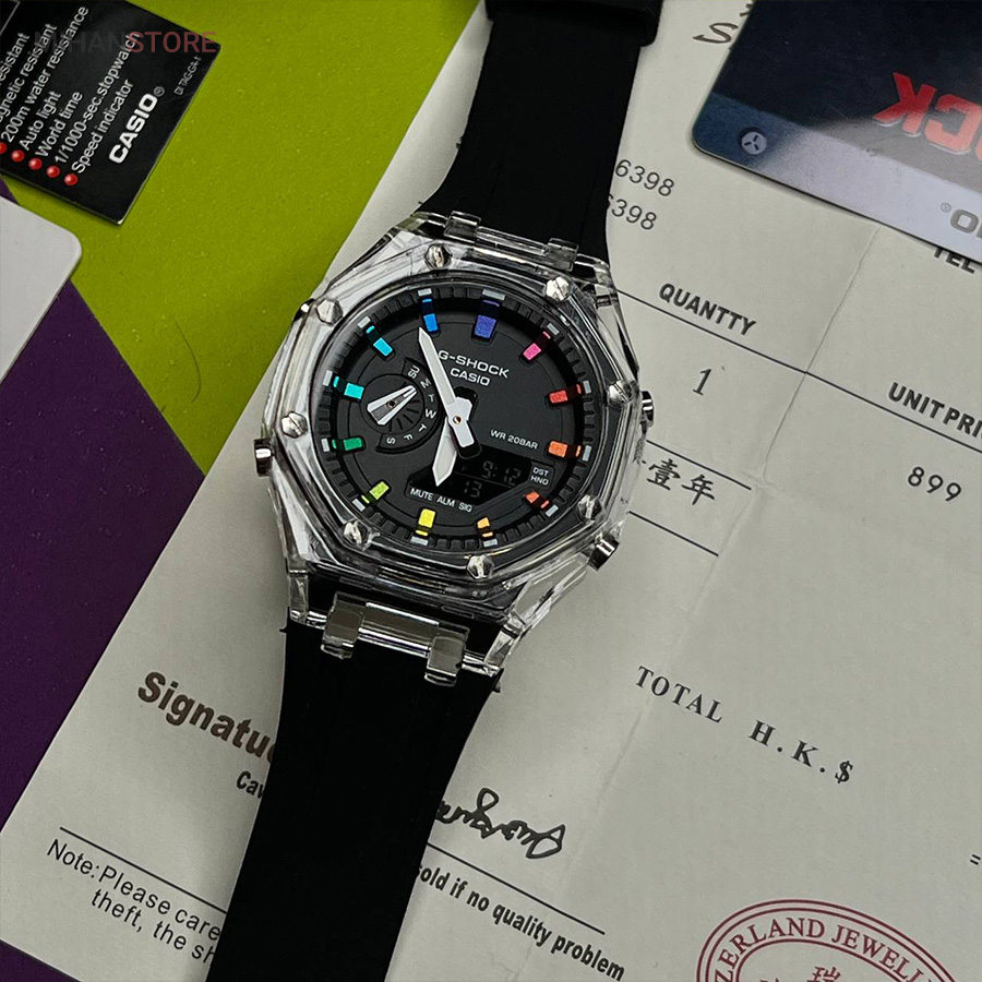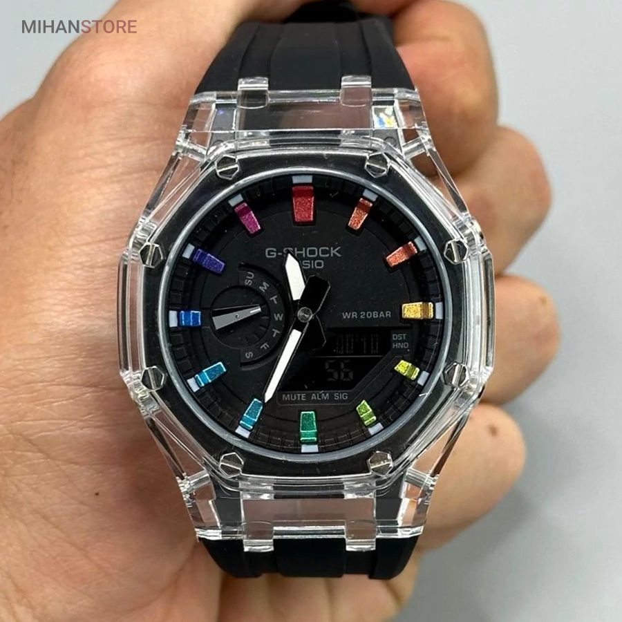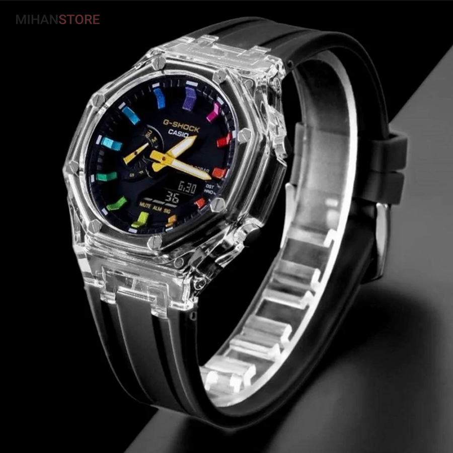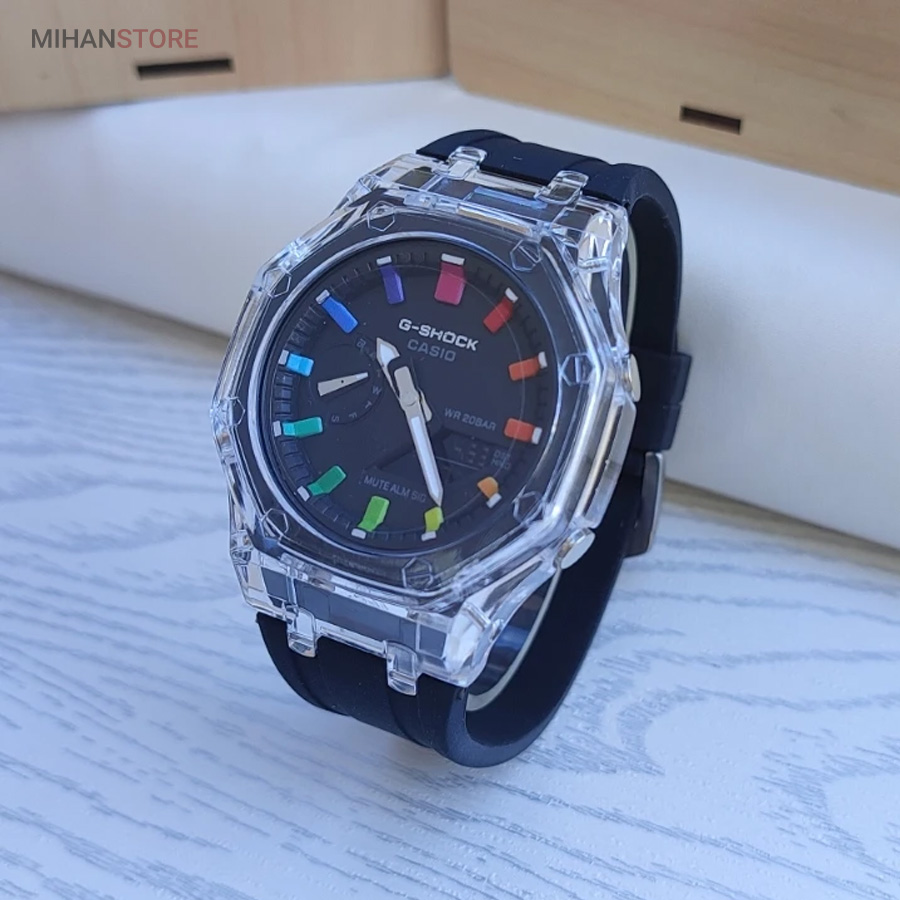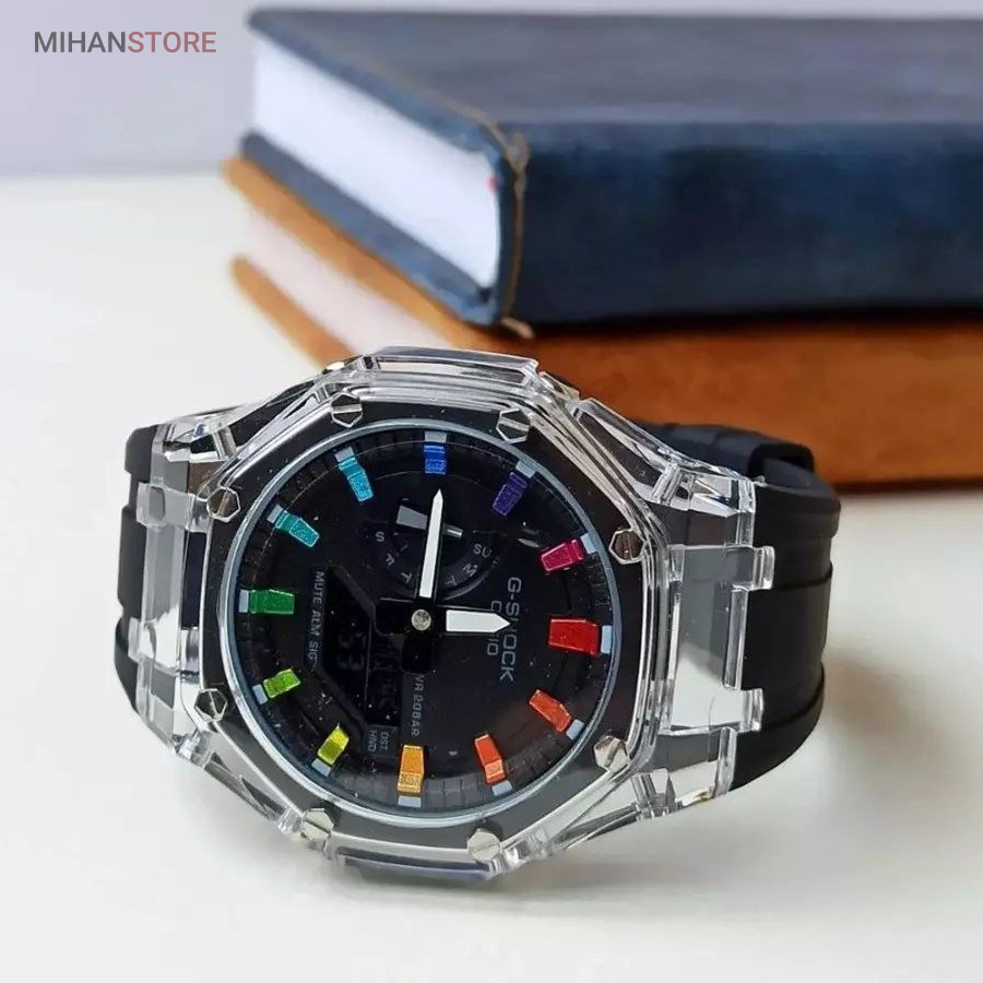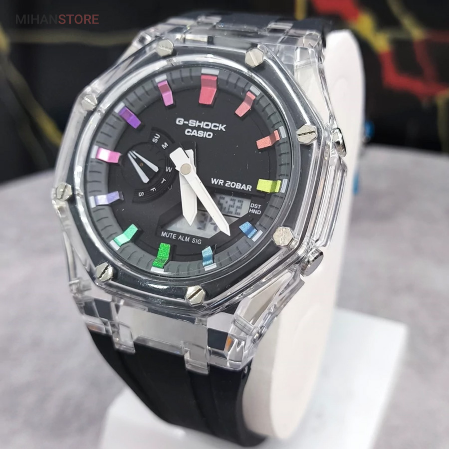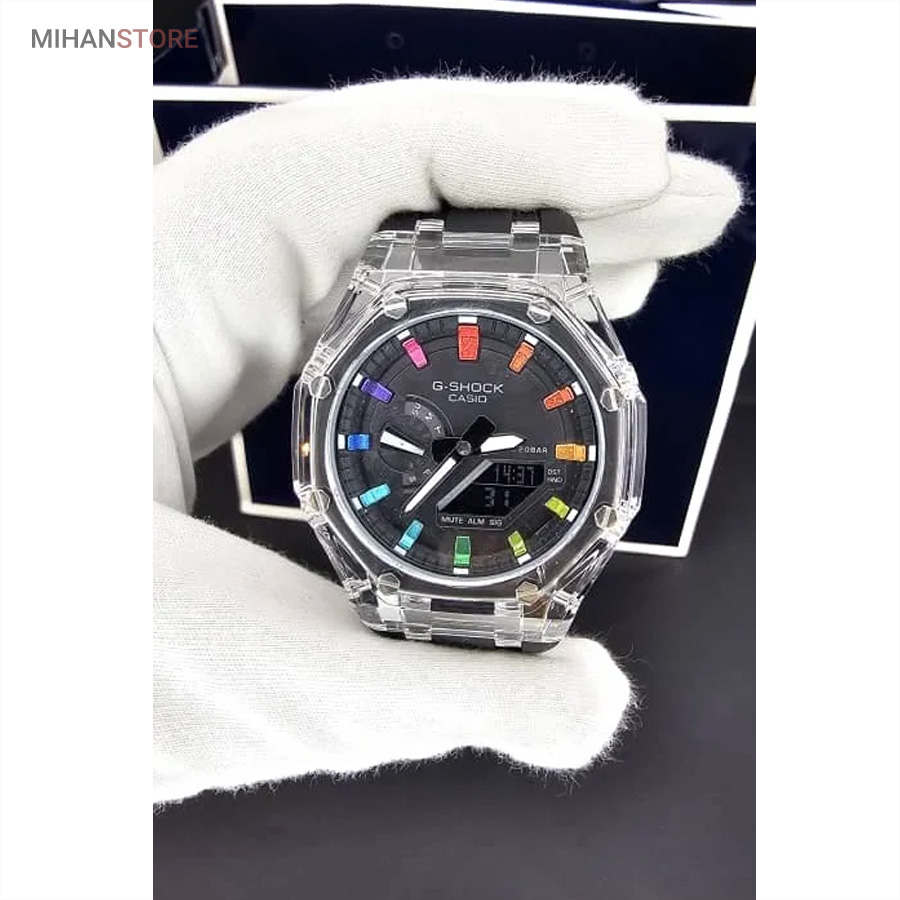 یکی از بهترین ساعت هایی که کمپانی کاسیو تولید میکند و از زمانی که ساعتهای کالکشن جی شاک به بازار معرفی شد ساعت جی شاک مدل GA2100 می باشد، کاسیو برای بار دیگر کاربران خود را به چالش کشید. مدل های جی شاک ، با ظاهر و طراحی مقاوم و منحصر به فرد خود، به محبوبیت بین المللی در بین جوانان رسید. ساعتهایی با قدرت ضربهپذیری بالا، مقاومت بالا در برابر آب و ضربات محکم که توانست نظر بسیاری از افراد را به خود جلب کند. ساعت مچی جی شاک دارای بند رابر مشکی خاص وموتور باکیفیت ژاپن وبدنه استیل وقاب شیشه ای جذاب است که بهترین انتخاب افراد خاص پسند می باشد.