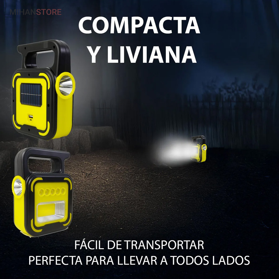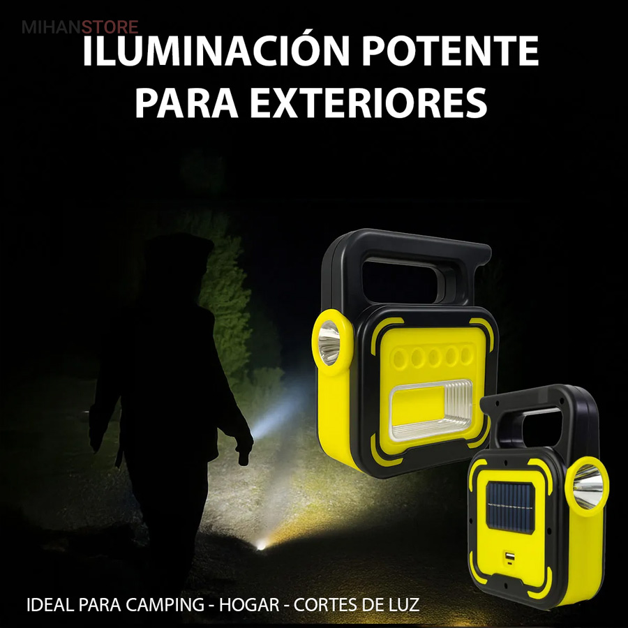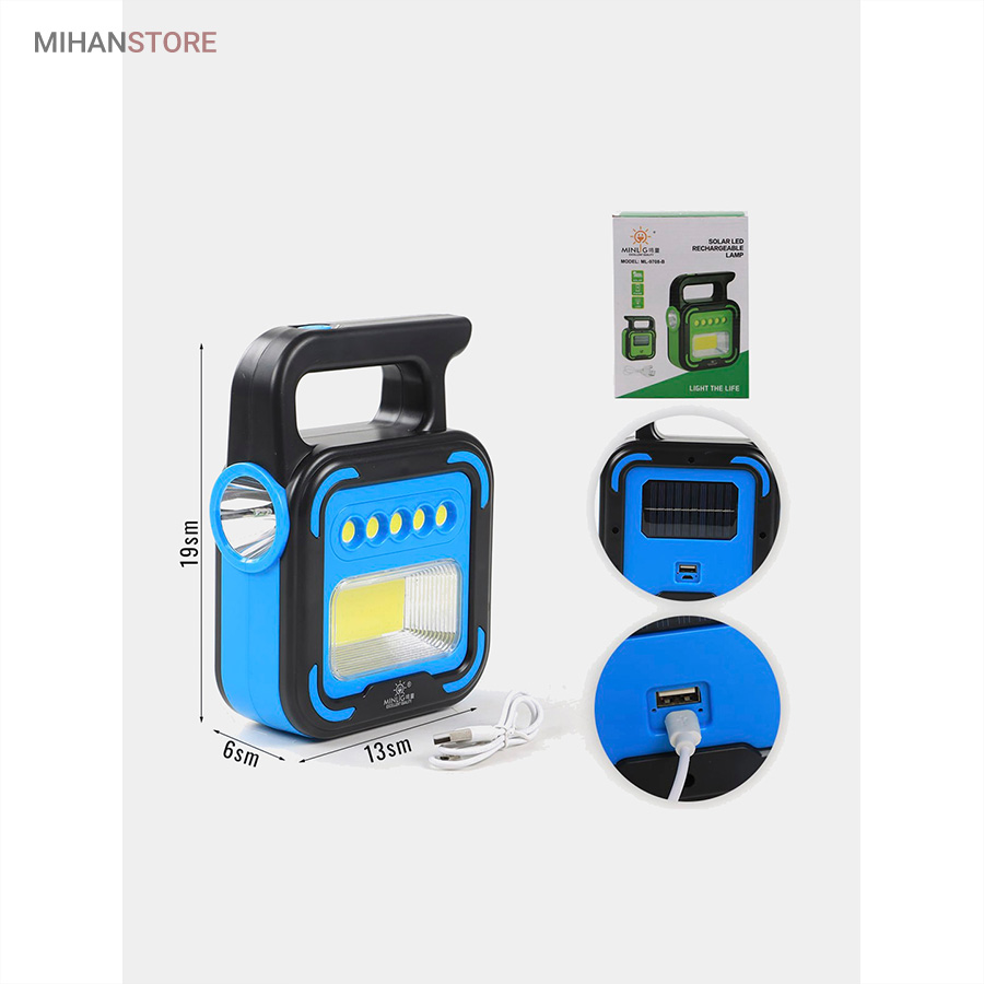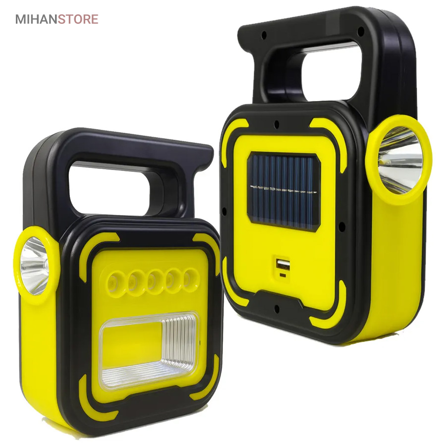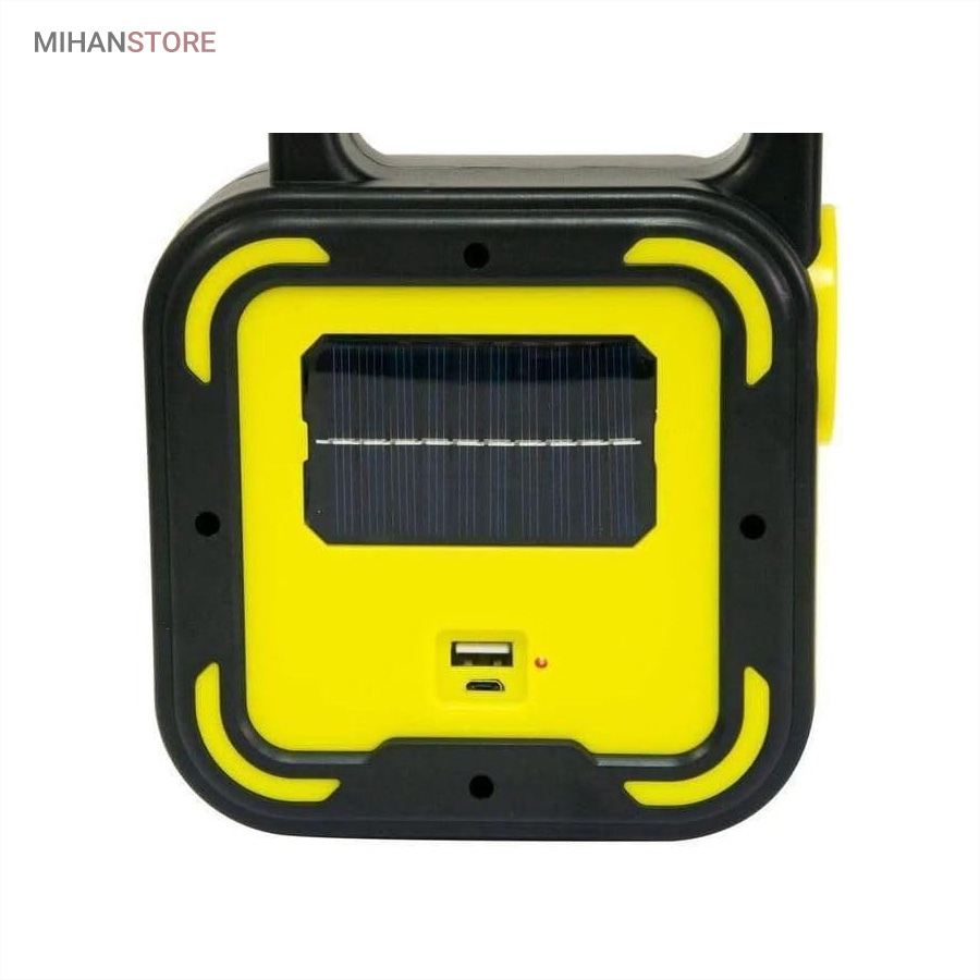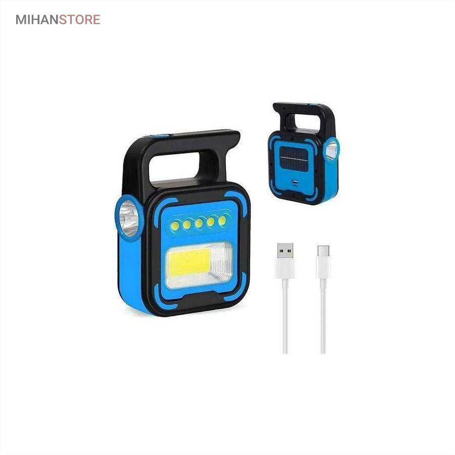 یک وسیله با چندکارایی جالب می باشد. جنس بدنه چراغ کار از ABS و مقاوم در برابر ضربه می باشد. چراغ و پروژکتور اضطراری دارای پاوربانک دارای 4 حالت نوردهی که شامل: چراغ قوه سفید و چراغ قوه آفتابی با نور زرد و چراغ جانبی قوی COB شش چراغه با نور قوی و چراغ جانبی کوچک میباشد. چراغ کار چند کاره دارای ویژگی هایی چون: دست گیره، قابلیت شارژ با برق شهری و نور خورشید، و خروجی USB برای شارژ موبایل می باشد.
