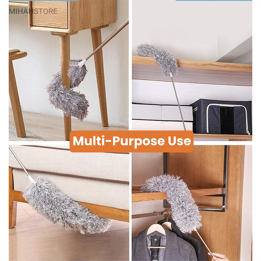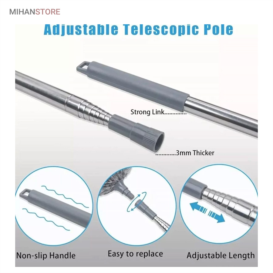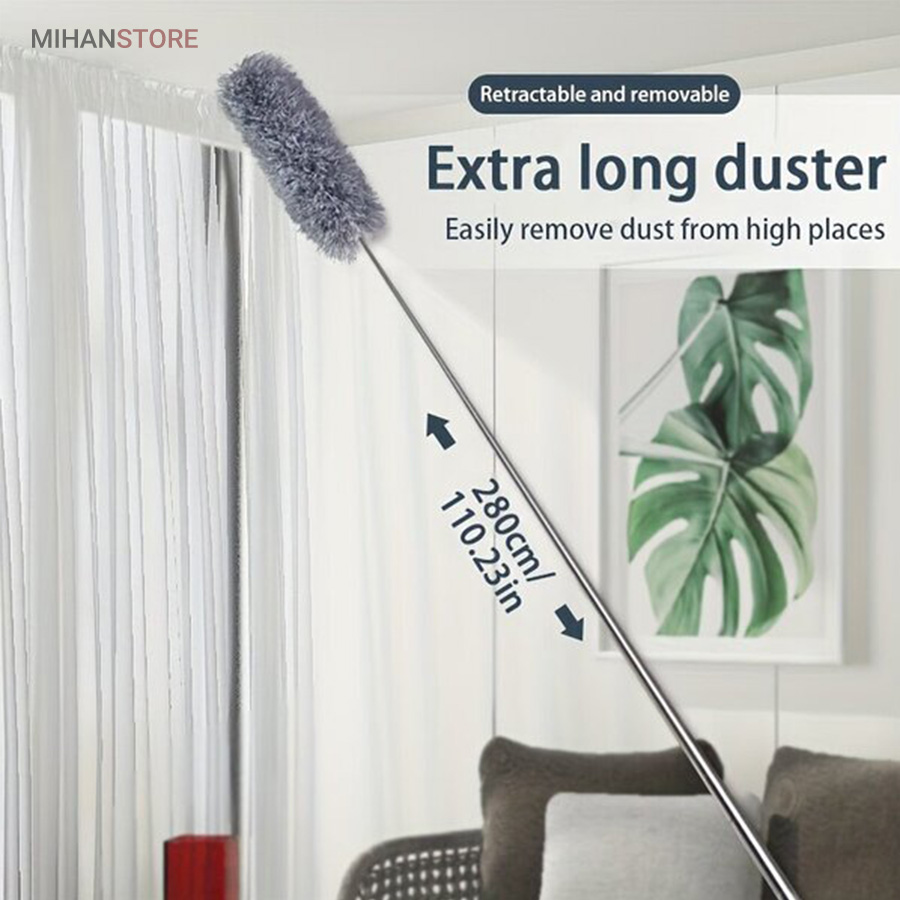 گردگیر تاشوی دسته بلند جهت نظافت و گردگیری و غبار روبی فضاهای دور از دسترس نظیر روی کابینت ها ، کنج سقف ها ، روی کمدها ،سطوح لوستر و چراغهای سقفی ، داخل آرک نورپردازی های مخفی و نظایر آن دارای کاربرد بوده و بخوبی در تمیزی محیط به شما کمک میکند . این محصول دارای دسته تاشو از جنس استیل بوده که بصورت تلسکوپی براحتی داخل خود جمع میشود و در کمترین فضای ممکن جای میگیرد .
